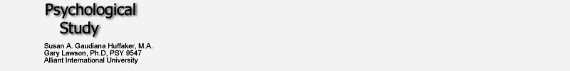 Susan A. Gaudiana Huffaker, M.A. is the primary investigator on this project. She will be working under the supervision of her dissertation chair, Gary W. Lawson, Ph.D., PSY 9547